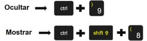 Una vez seleccionada las filas o columnas que contienen la información que no se necesita o no se desea tener visible, se van a utilizar los siguientes atajos: