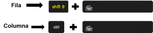 Cuando la información contenida se desea eliminar o por el contrario es necesario agregar más filas o columnas, el primer paso también es seleccionarlas con los atajos mencionados primero y una vez hecho esto, se usa el atajo: